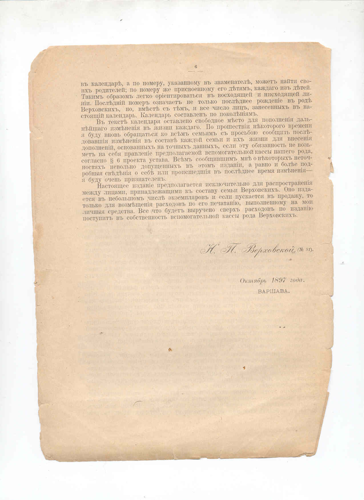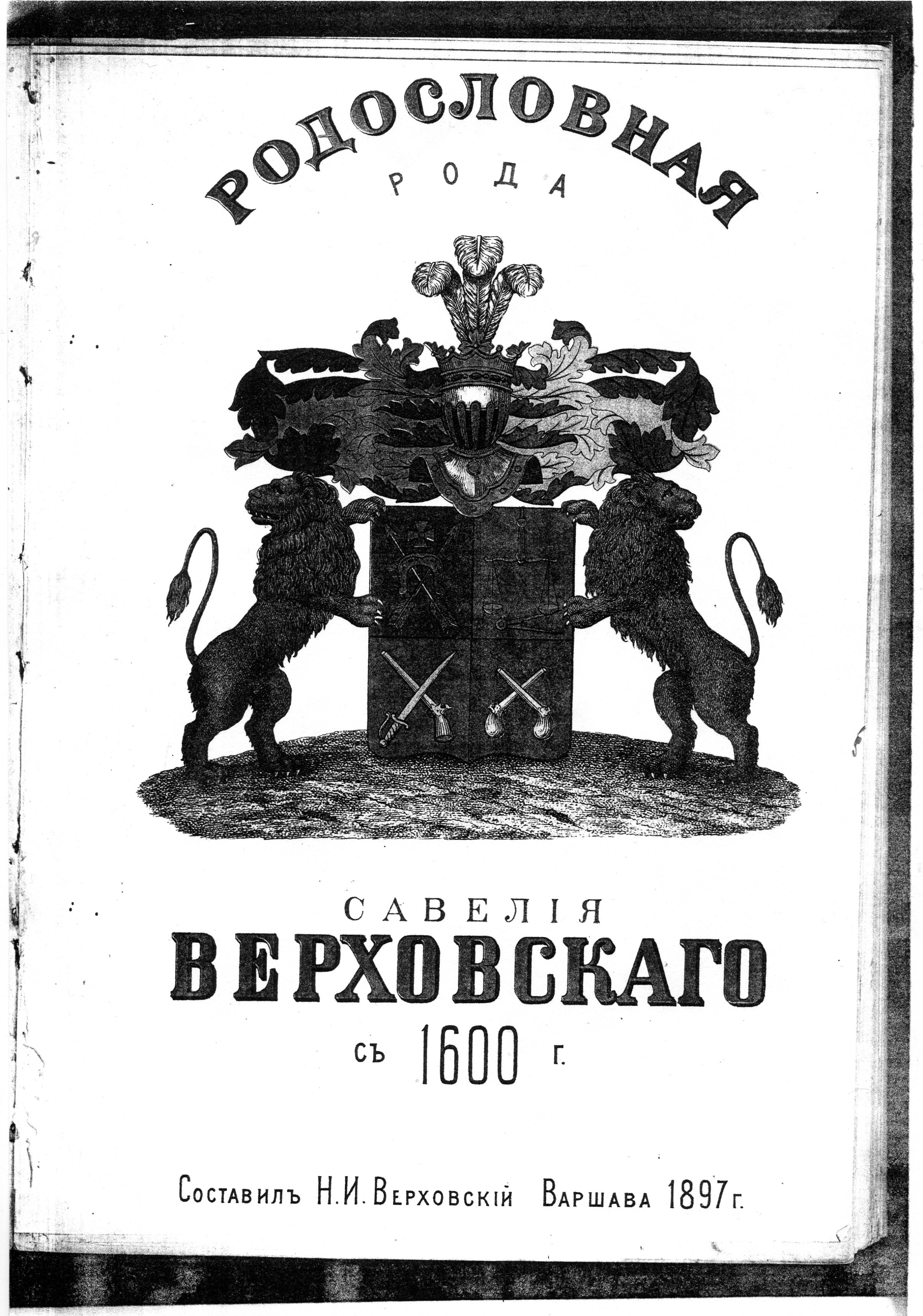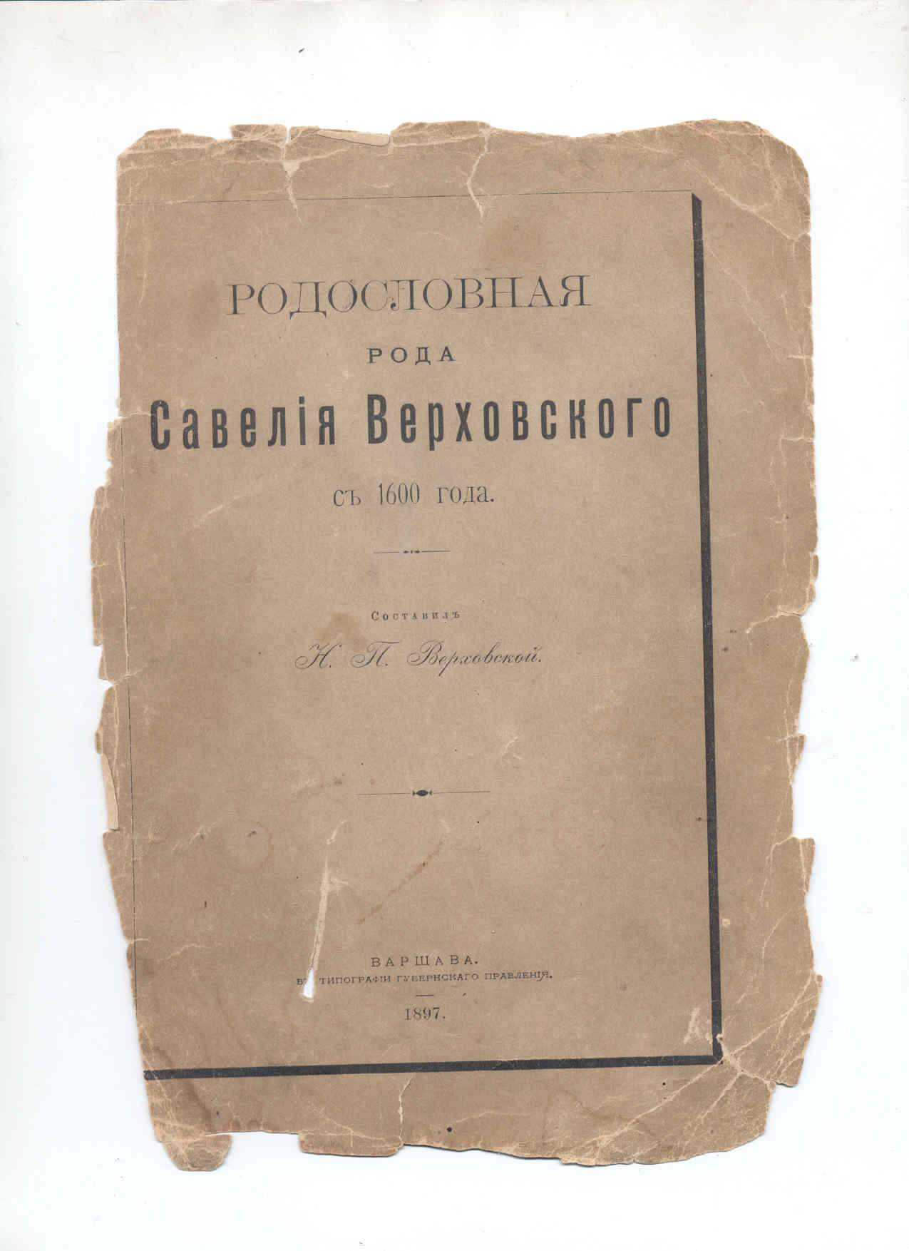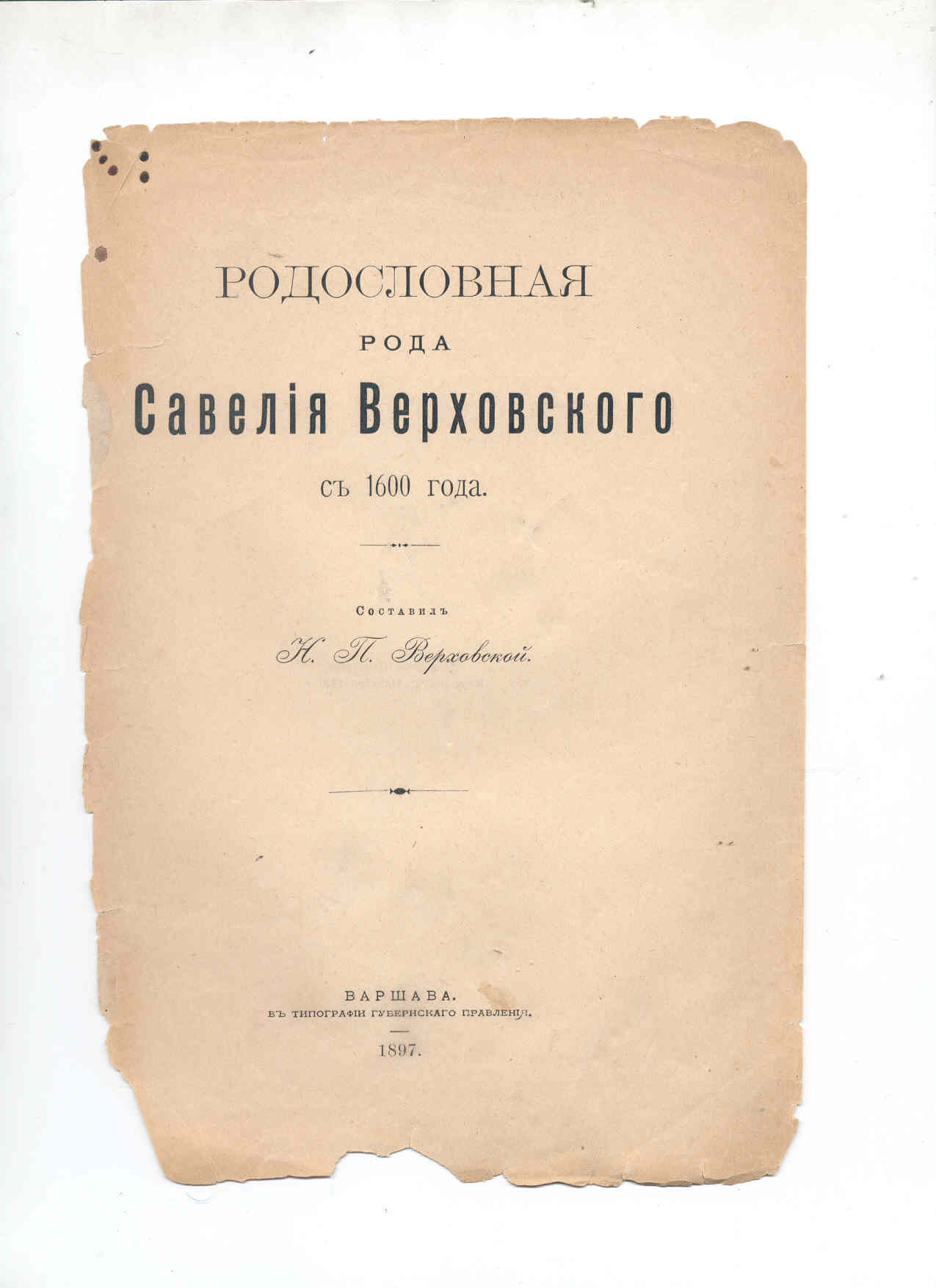 Н. П. Верховской. Родословная рода Савелия Верховского с 1600 года. Варшава, в типографии Губернского правления, 1897.