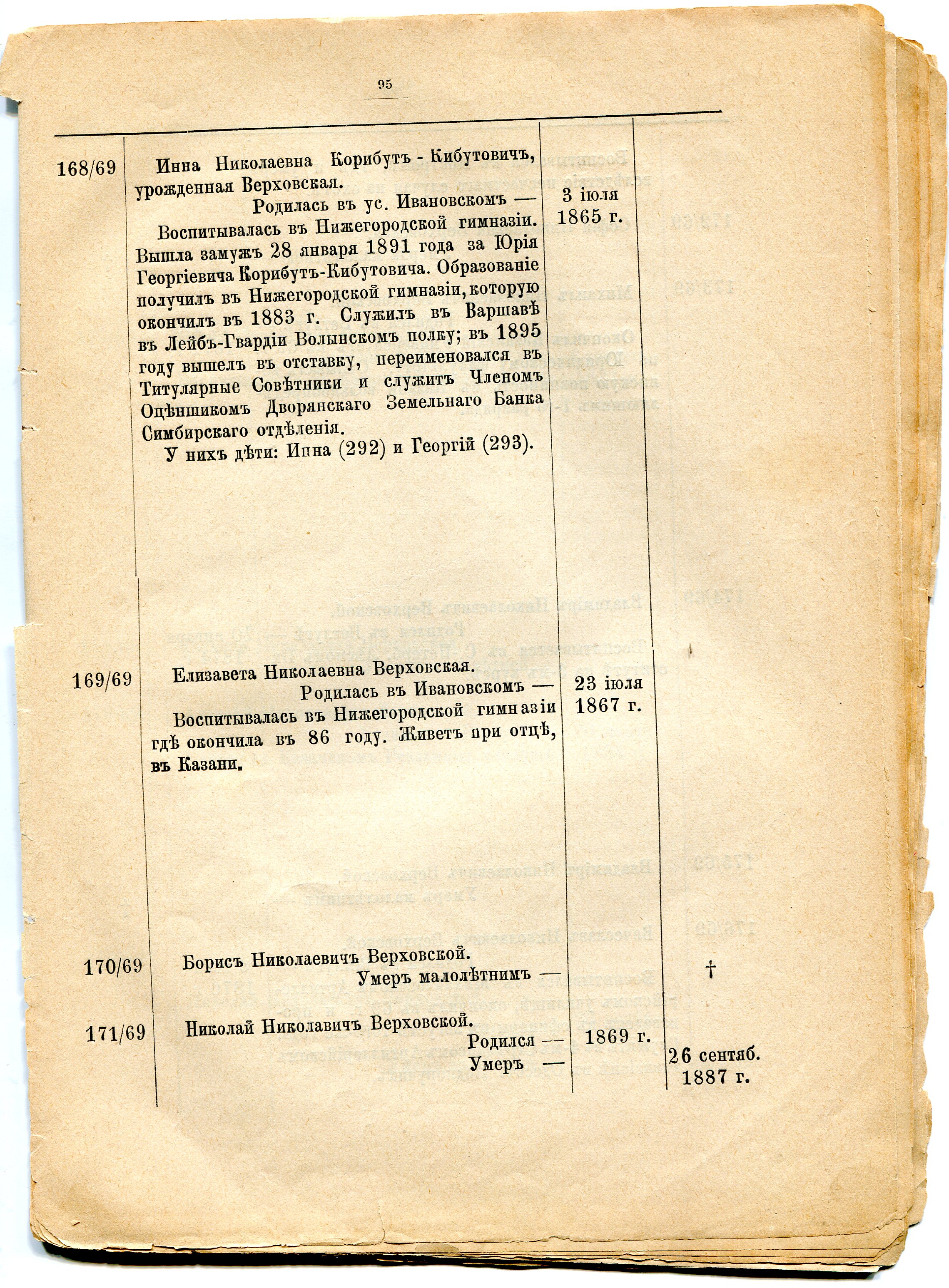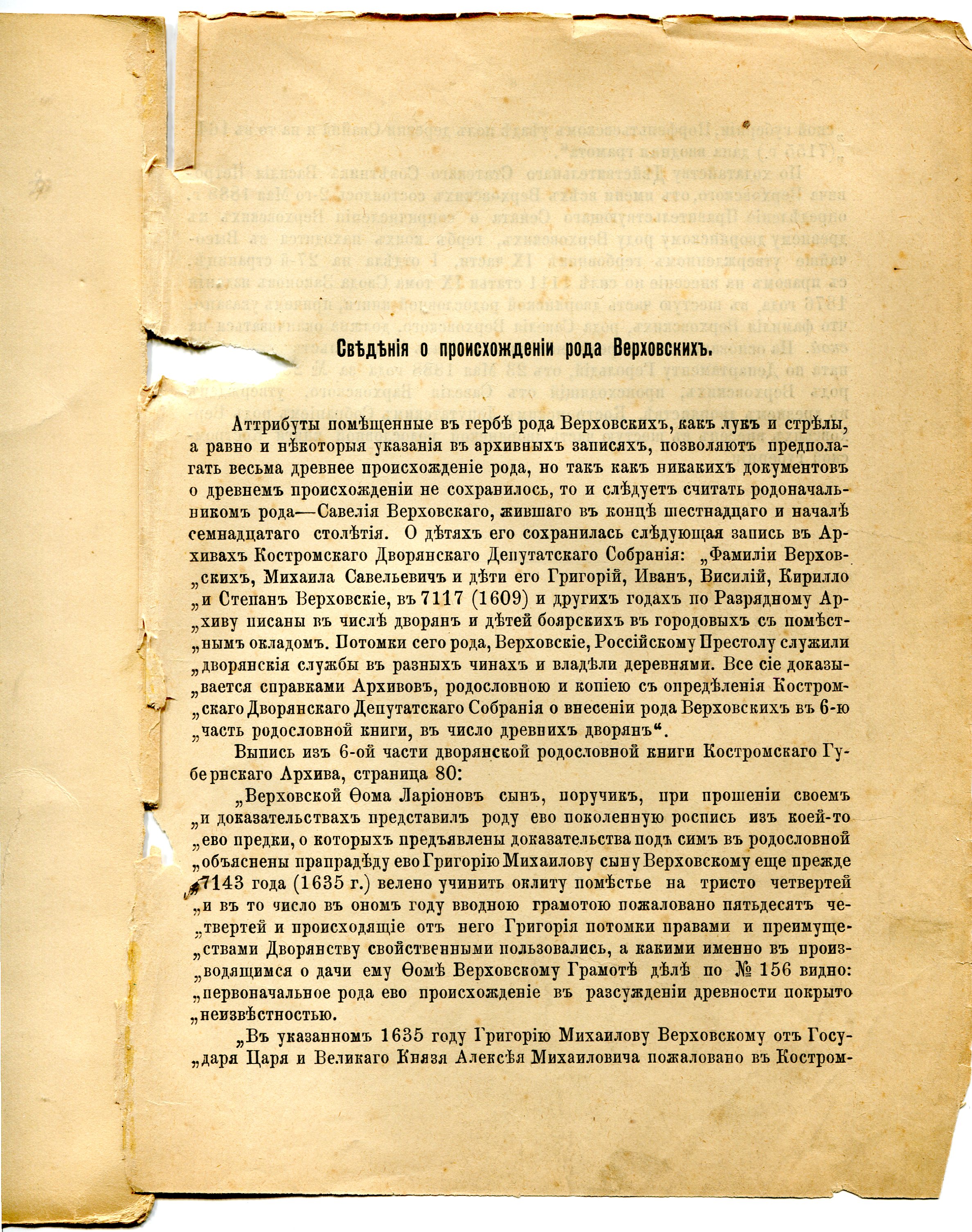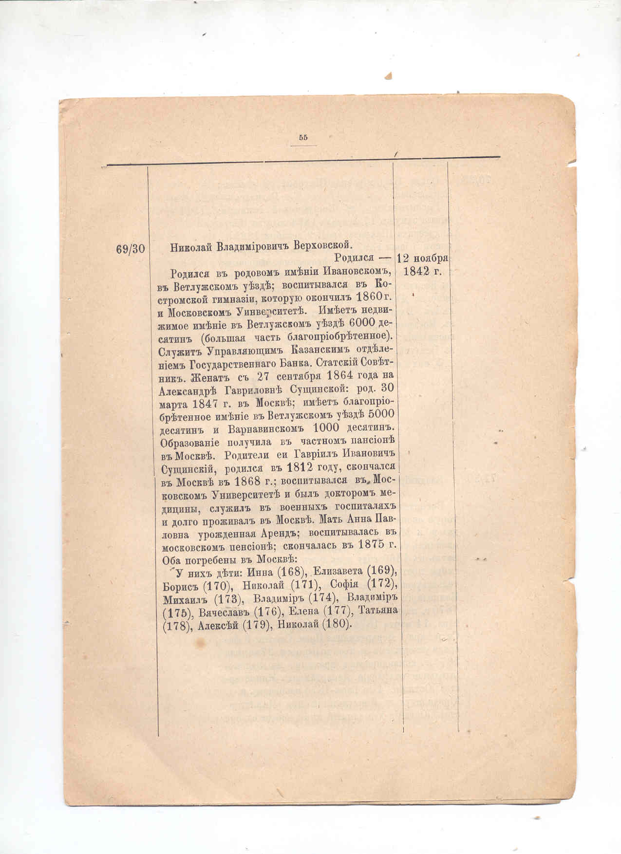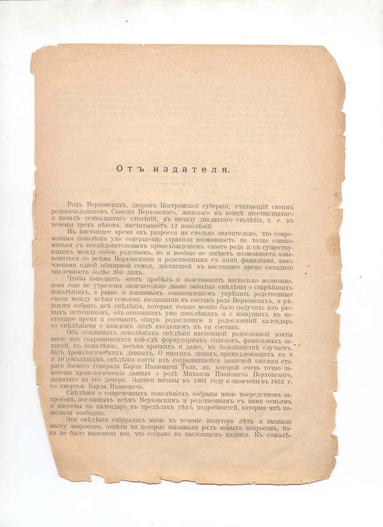 Н. П. Верховской. Родословная рода Савелия Верховского с 1600 года. Варшава, в типографии Губернского правления, 1897.