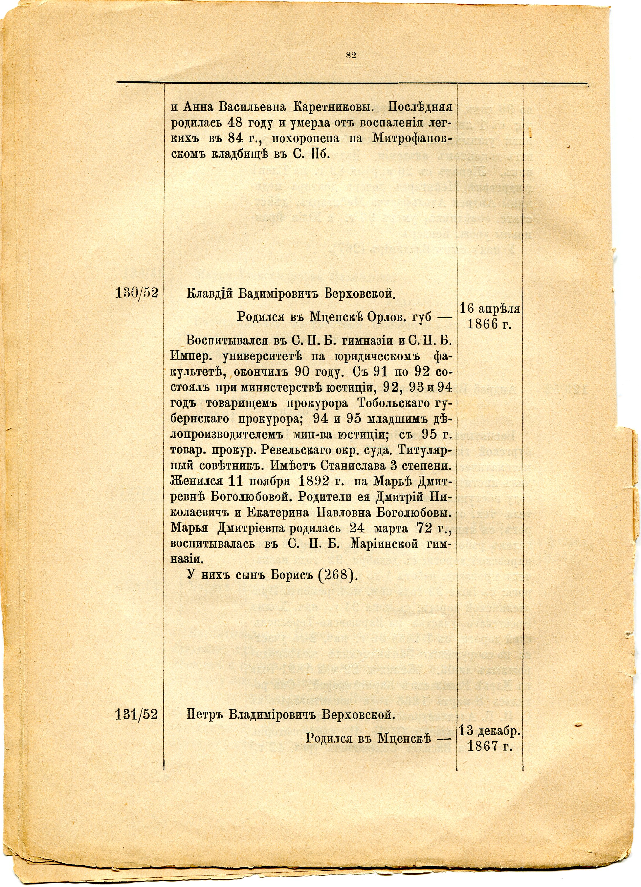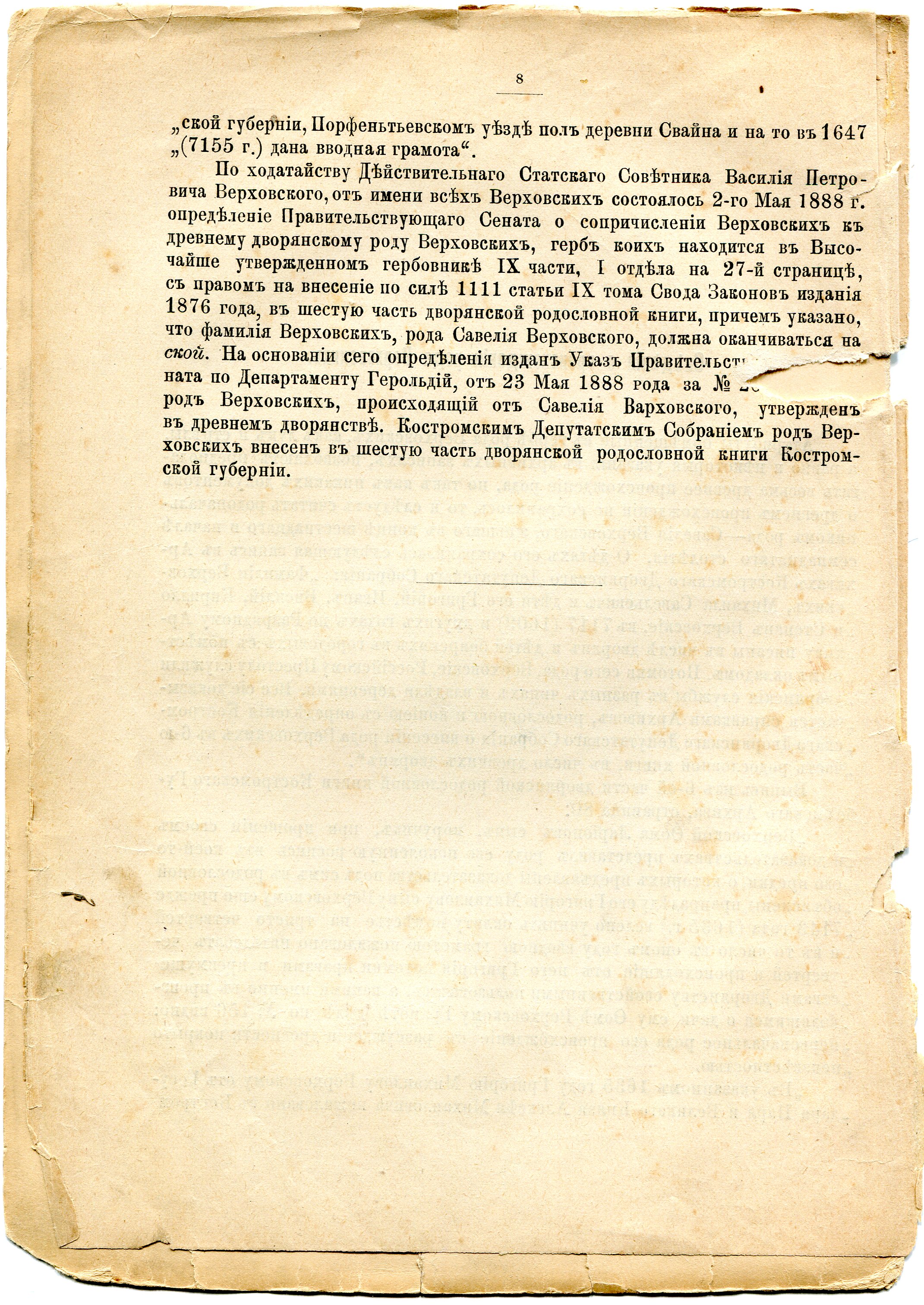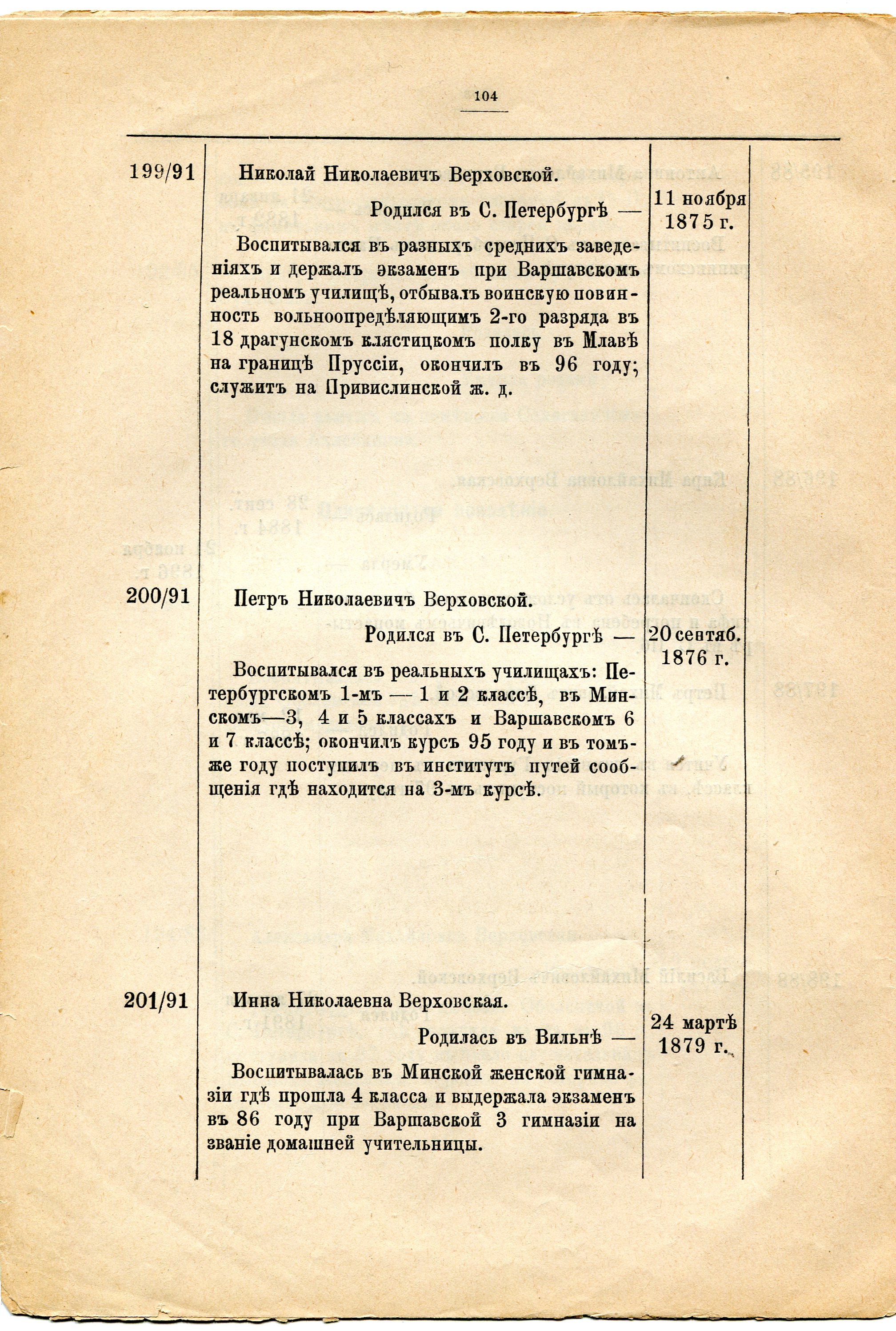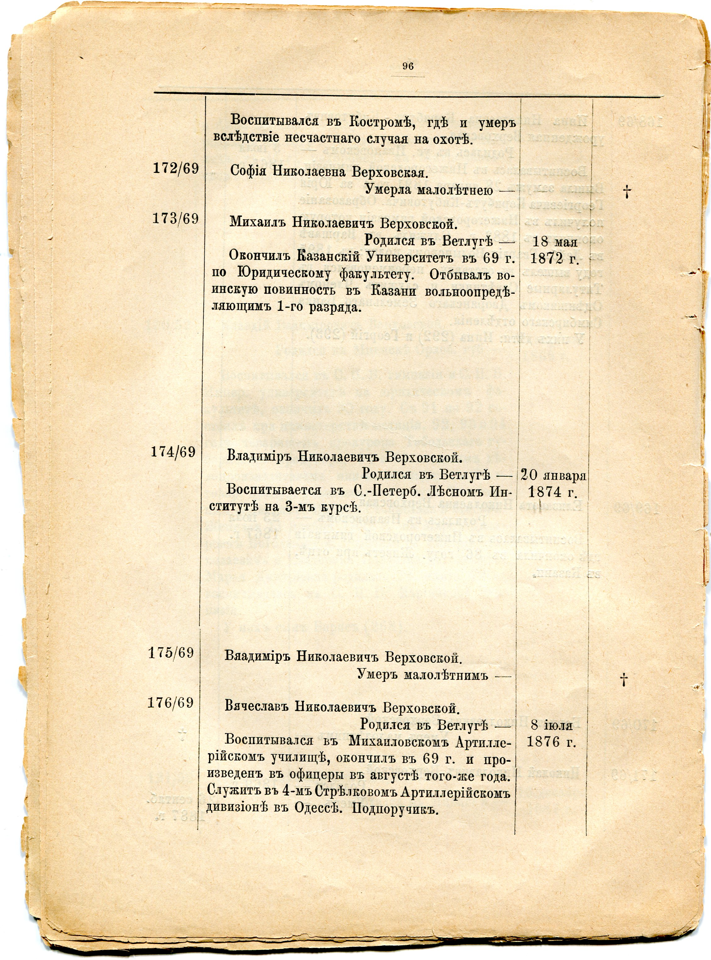 Н. П. Верховской. Родословная рода Савелия Верховского с 1600 года. Варшава, в типографии Губернского правления, 1897.