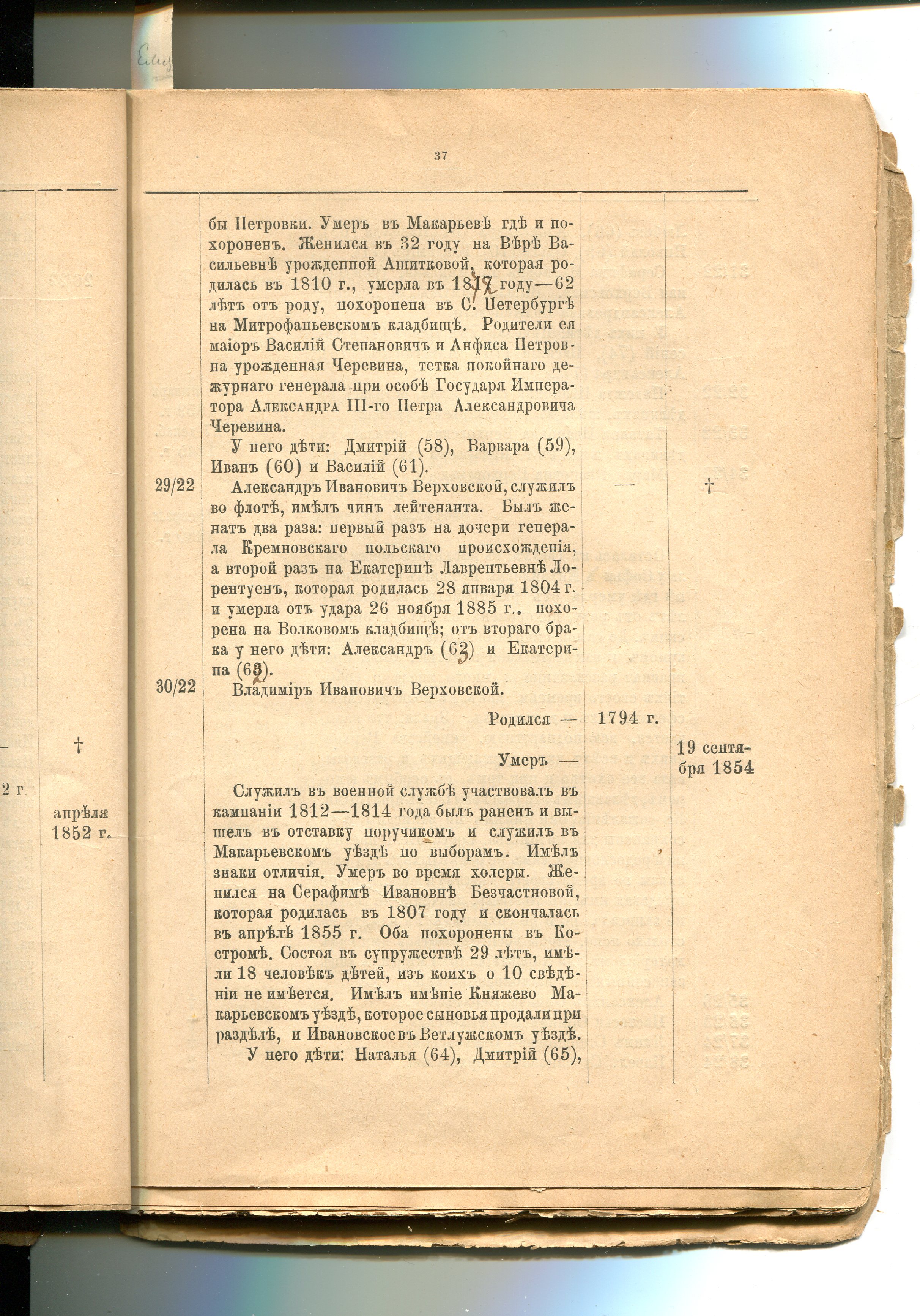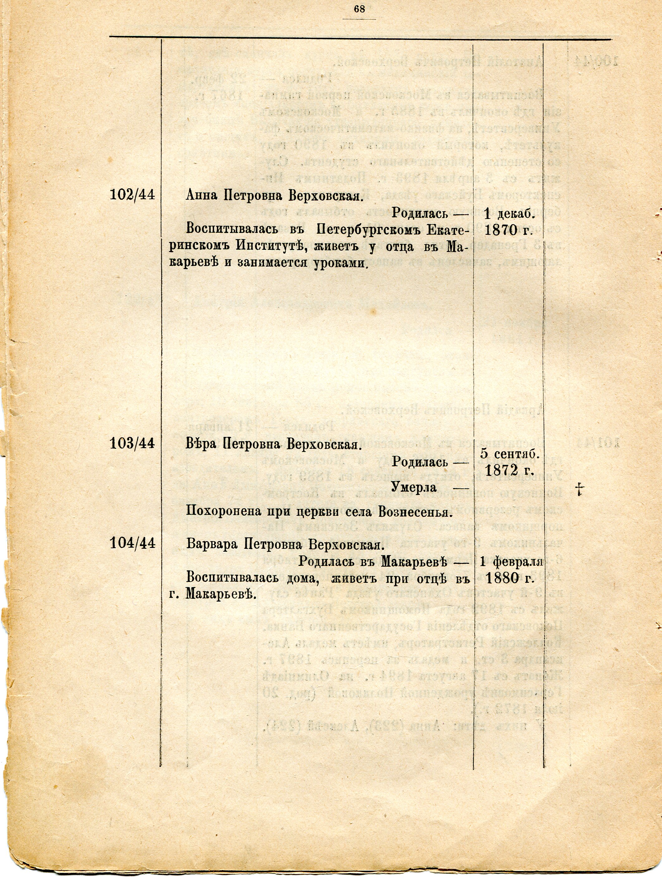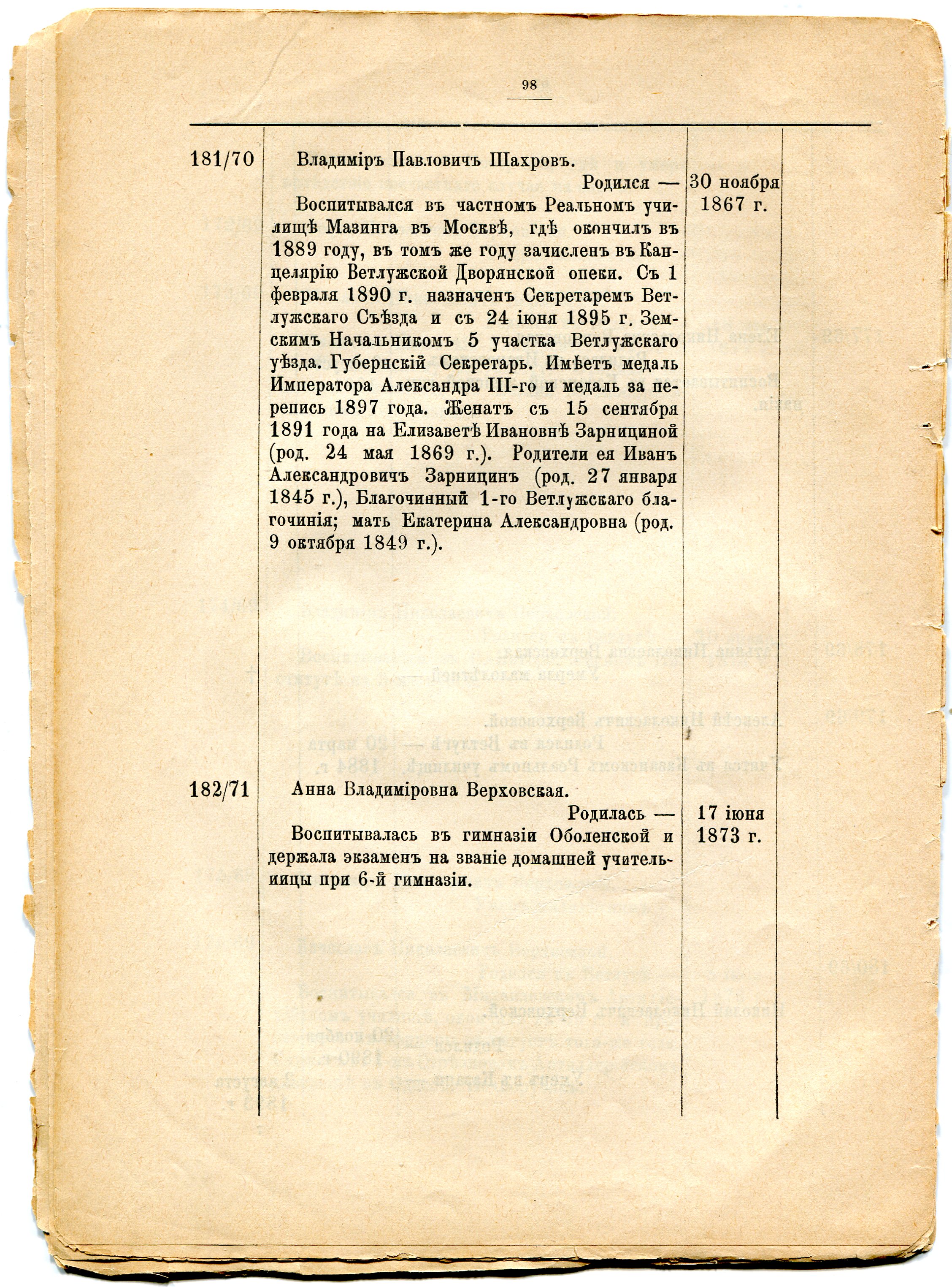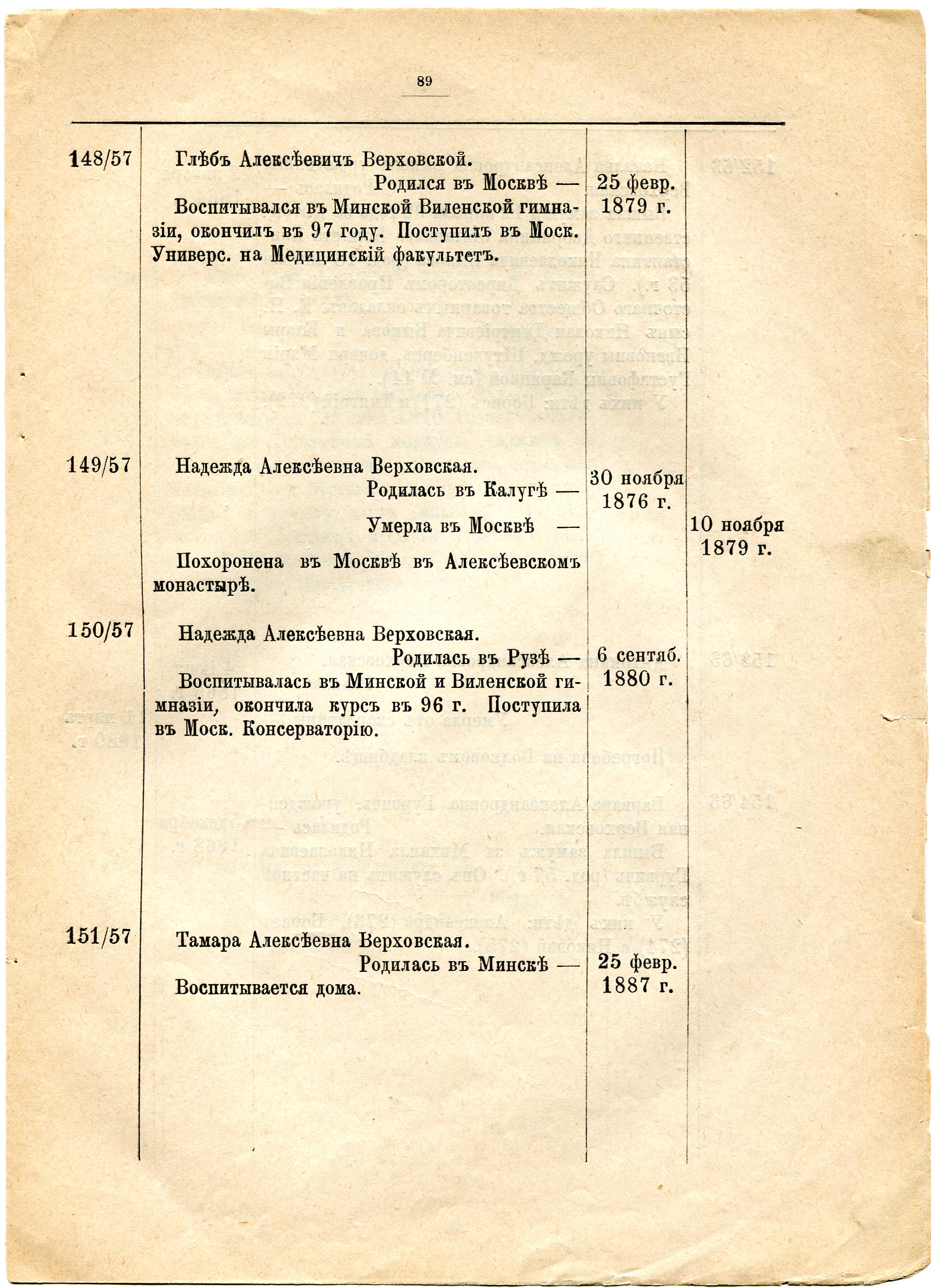 Н. П. Верховской. Родословная рода Савелия Верховского с 1600 года. Варшава, в типографии Губернского правления, 1897.